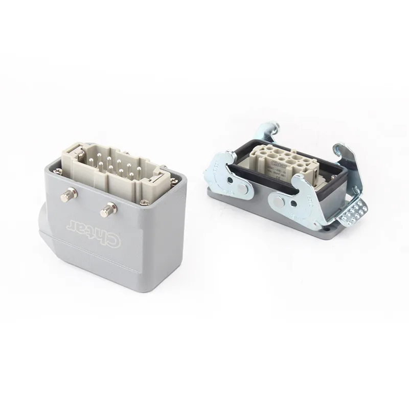 Nämä CHTAR 10 Pin AG Heavy Duty -liittimet on suunniteltu modulaarisella periaatteella. Se koostuu naaraspuolisesta pistorasian kotelosta, johon mahtuu erilaisia ​​sisäkekokoonpanoja, joissa on 10 numeroa naaras- tai uroskoskettimia. Se on valmistettu kaksoislukitusvivusta sisäisten liittimien suojaamiseksi.