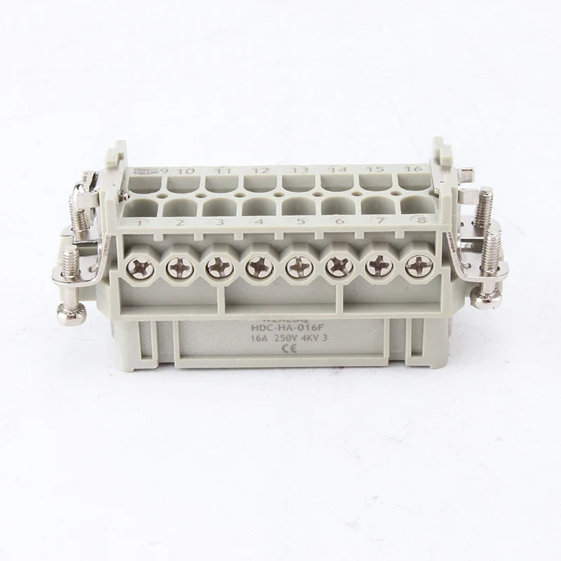 16A 10 Pin Insert Heavy Duty -liittimet ovat inerttejä naaras- ja urososia. HA-016-M ja HA-016-F ovat uros- ja naarasosia, ne on sovitettu yhteen sarjana. Ne toimivat yhdessä H16A alumiinikotelon kanssa. Sisäosat ja ulkokotelo muodostavat yhdessä täydellisen liitintuotteen. Ne on valmistettu PC-kuoresta ja messingistä hopeoidulla. Hopeoidut tapit tekevät siitä hyvät sähköliitännät.