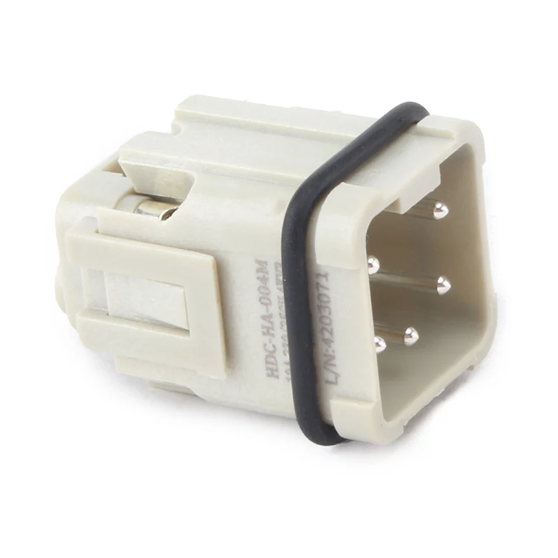 Se toimii 10A H3A-MTG Housing raskaan käytön liittimellä. M HA 4 Pin Insert Heavy Duty Connector on valmistettu vahvasta PC-materiaalista ja messingistä hopeoitu. Nastamme ovat hopeapinnoitetut, erittäin hyvälaatuiset ja paljon paremmat sähkönjohtavuudet. Se on koottu tiivistekumilla parantaakseen vedenpitävyyttä.