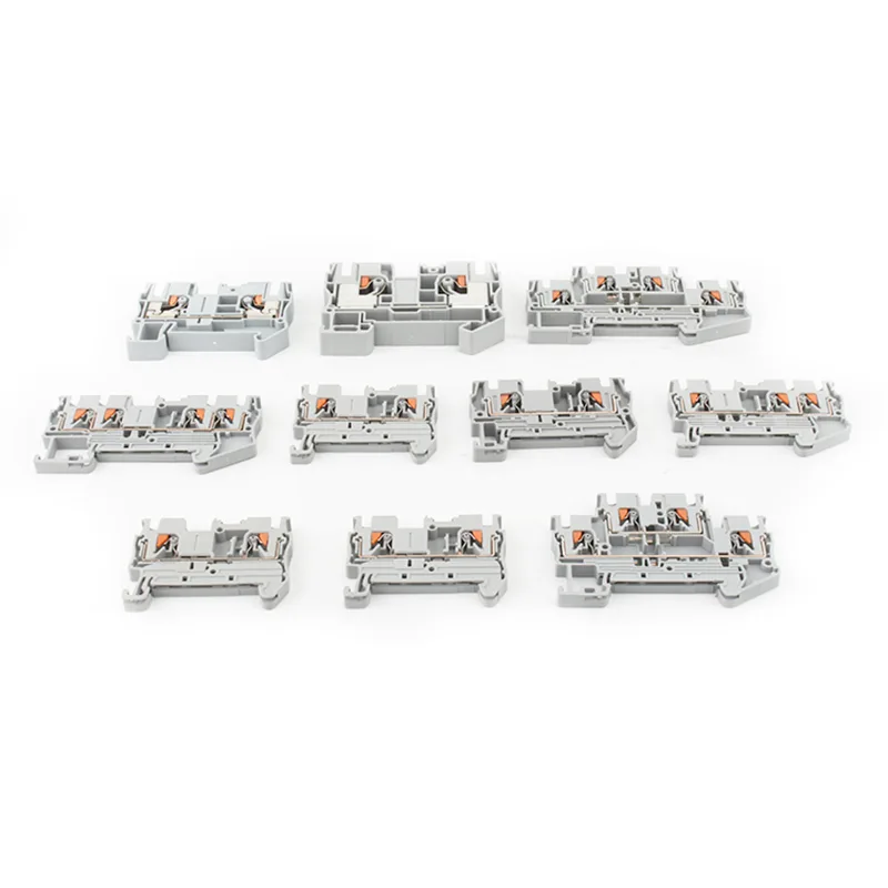 PT 10 Feed Through Din Rail -liitinlohko sisältää push-in-liitäntätekniikan, joka yksinkertaistaa johdotusta – työkaluja ei tarvita. Käyttäjät voivat asettaa valmiin vaijerin suoraan sisään, ja integroitu jousikiinnitysmekanismi lukitsee sen turvallisesti. Verrattuna ruuvityyppisiin liitäntöihin tämä innovaatio lisää tehokkuutta dramaattisesti, lyhentää johdotusaikaa jopa 80 % ja vähentää sisäänvientivoimaa noin puoleen. Tuloksena on nopeampi integraatio ja pienempi työvoima.